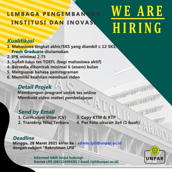 Rekrutmen Tenaga Magang Lembaga Pengembangan Institusi dan Inovasi (LPII) Membuka lowongan magang bagi mahasiswa aktif...